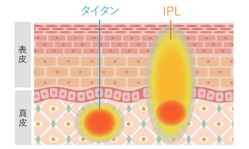 タイタンは、赤外光という波長の光を用い真皮層に作用させることで、肌を引き締めリフトアップ効果を得られます。